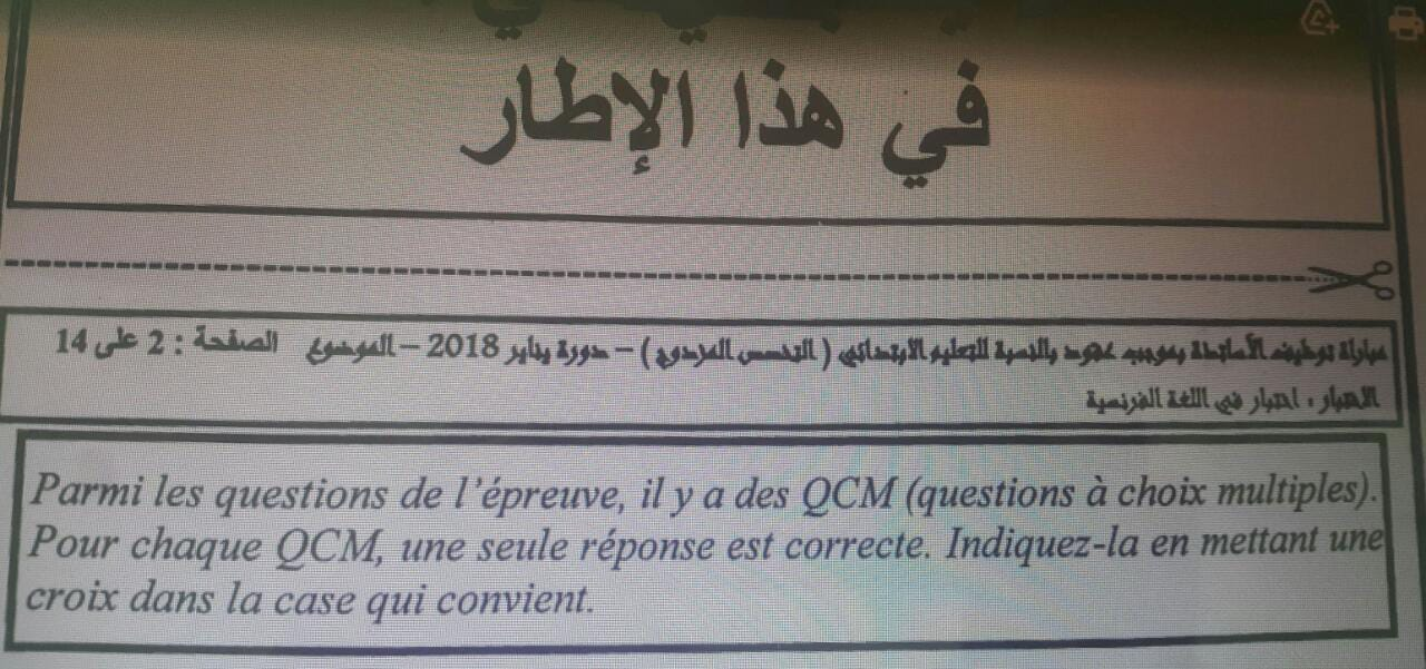 تصحيح اختبار اللغة الفرنسية بالنسبة للاساتذة المتعاقدين للتعليم الابتدائي التخصص المزدوج  دورة يناير 2018